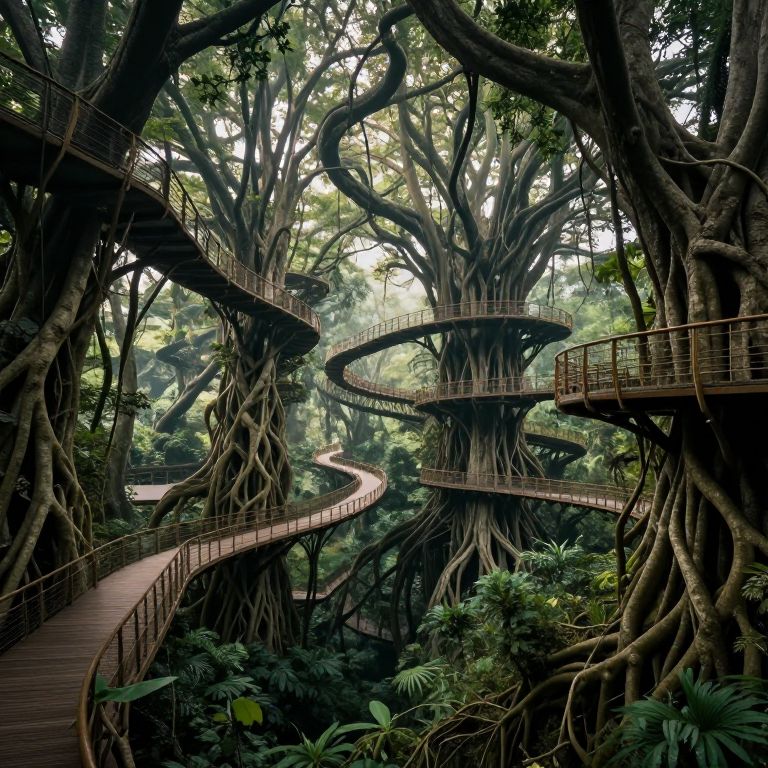 Ethereal Gravity-Defying Forest Walkways