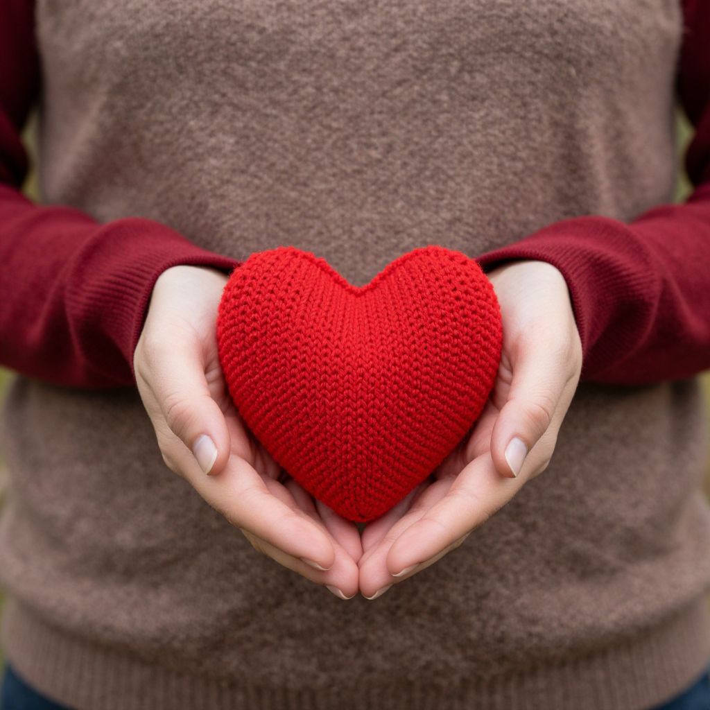 Hands Cradling Red Knitted Heart