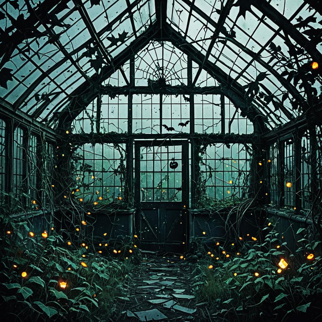 Cartoonish, spooky Halloween scene of a abandoned hospital with broken windows, flickering fluorescent lights, and peeling wallpaper. Intricate details enhance the eerie atmosphere.