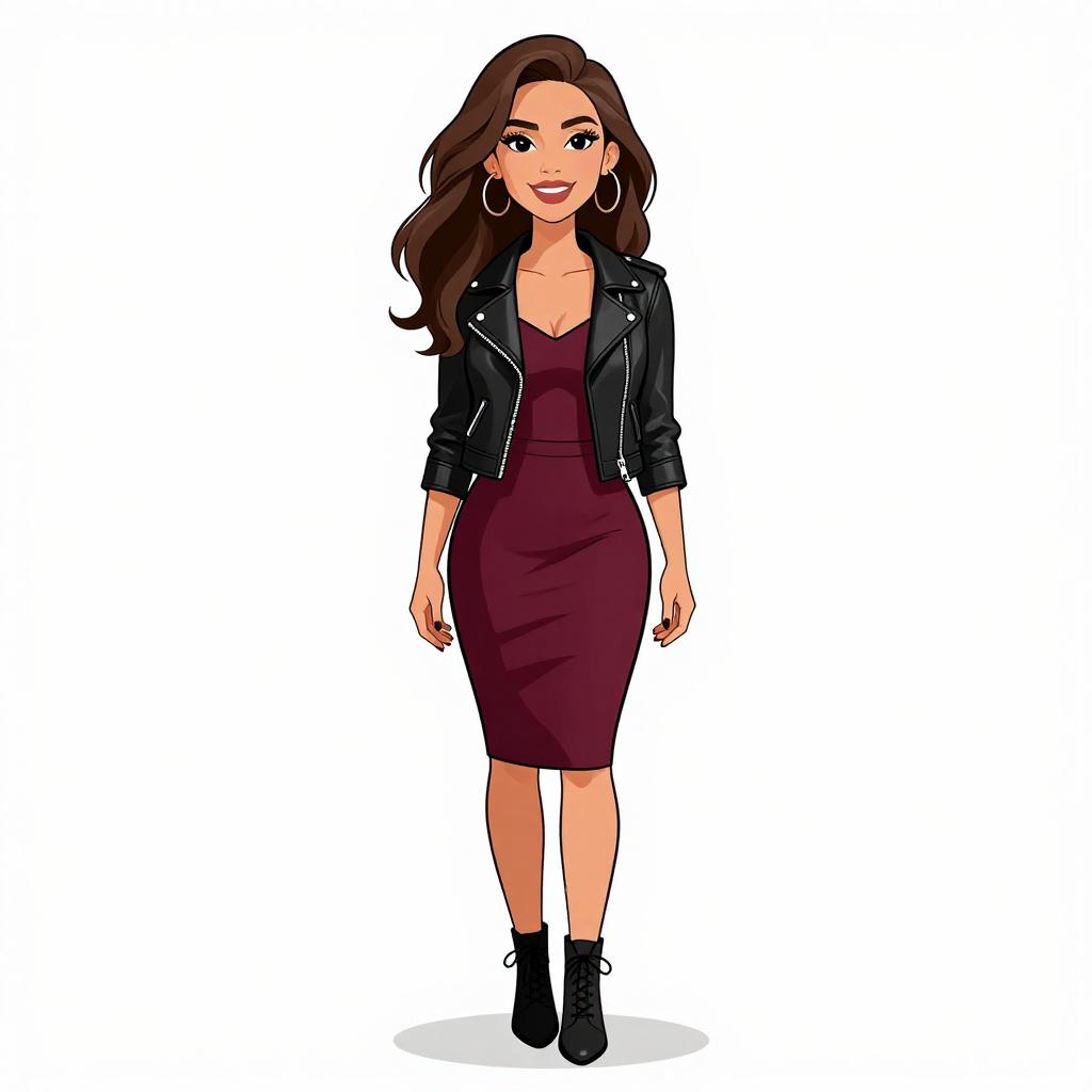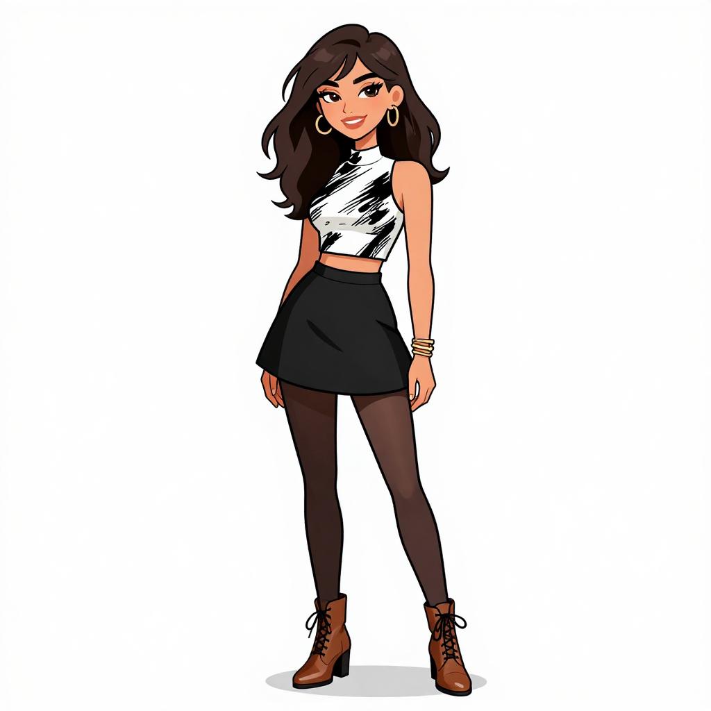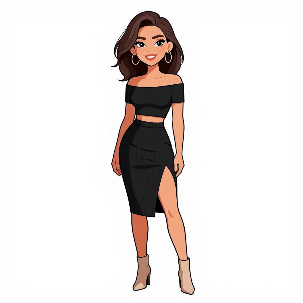 Woman with pretty face and pretty hair. smiling Woman, edgy streetwear, transparent raincoat with long sleeves, black bandeau top underneath, high-waisted black shorts with a lace-up front, thigh-high slit on the raincoat, black ankle strap heels, white studio background. --sref 1467