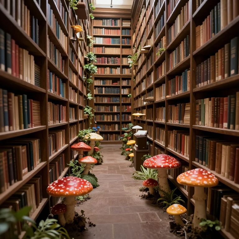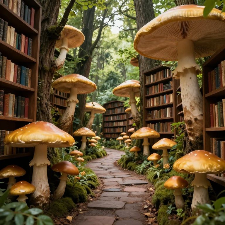 A chandelier of floating toadstools illuminates a subterranean library where books whisper their contents aloud and readers never age.