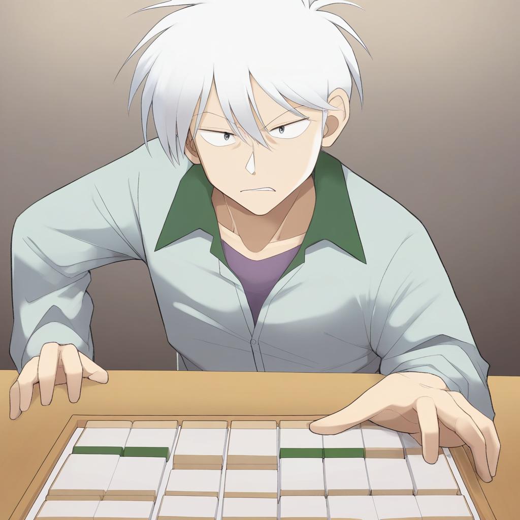 Akagi shigeru, fukumoto mahjong, 1boy, short hair, white hair, grey hair, medium bangs, collared shirt, by artist kurikara, leet