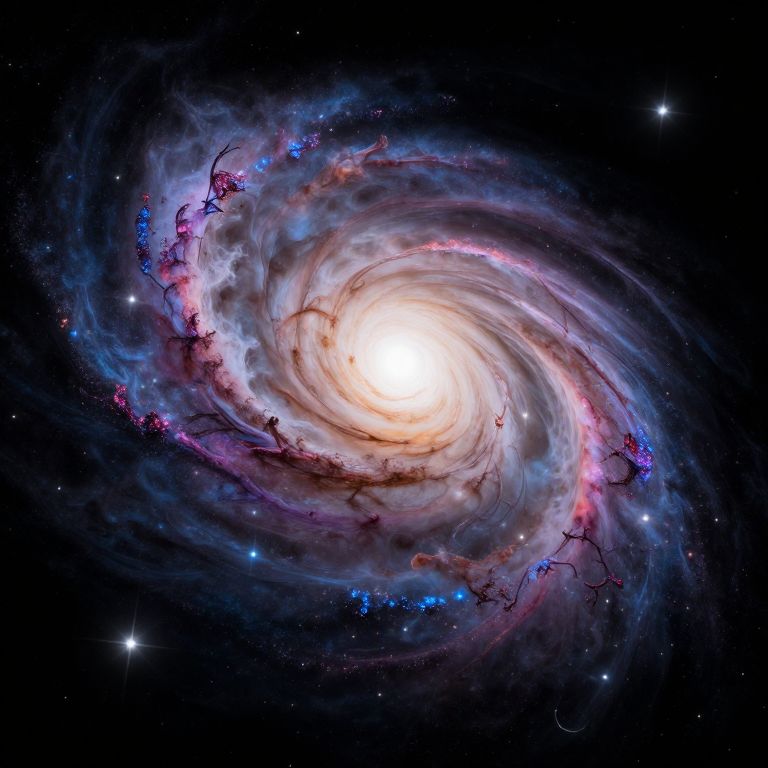 A highly detailed 3D animated image of a spiral galaxy featuring intricate nebulae, iridescent smoke, and bright stars. The design showcases swirling cosmic clouds in shades of blue, pink, and purple with a glowing central core, rendered in 8K resolution using Octane Render. This space-themed digital artwork evokes a sense of vastness and cosmic beauty.