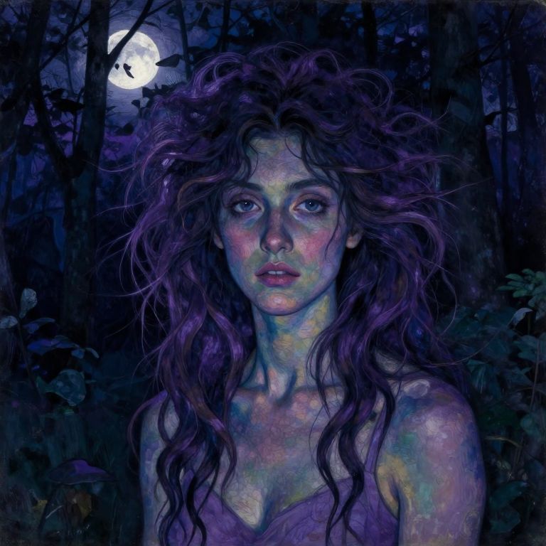 A portrait of an enigmatic figure draped in flowing garments is captured from a unique perspective, enveloping the subject within a landscape where fantastical creatures merge with natural elements, creating a sense of intrigue and unease. The scene unfolds amidst shifting hues transitioning from soft pastel shades to vivid, almost surreal tones towards the horizon, fostering a mesmerizing emotional gradient that invites reflection on the mysteries of existence. This artistic approach combines impressionistic brushstrokes with elements of magical realism, evoking a dreamlike atmosphere and challenging traditional perceptions of reality.