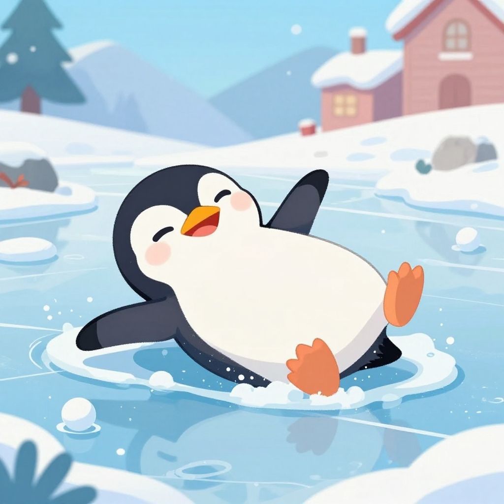 Goofy Penguin Slipping on Ice