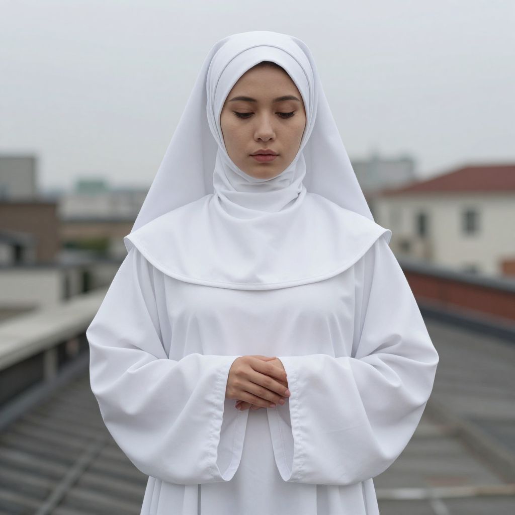 Close-Up White Nun Costume on Roof