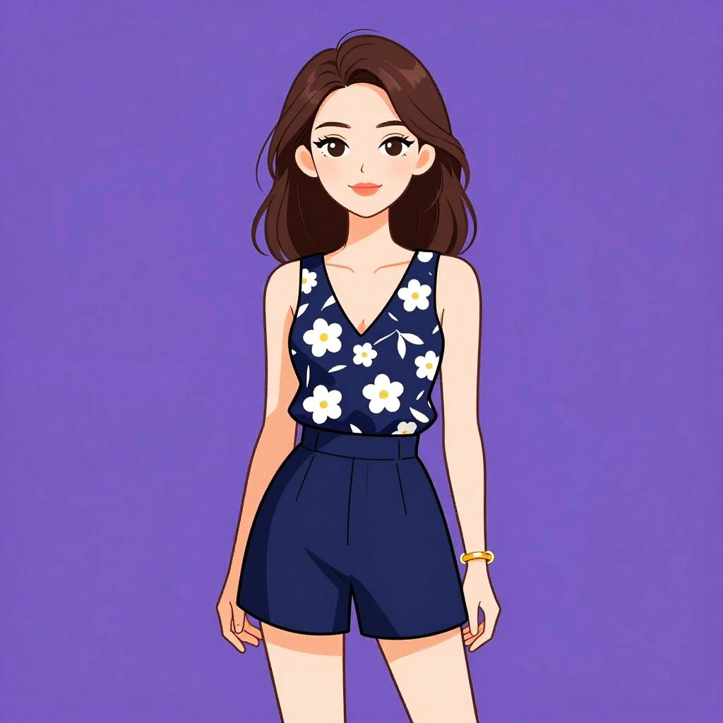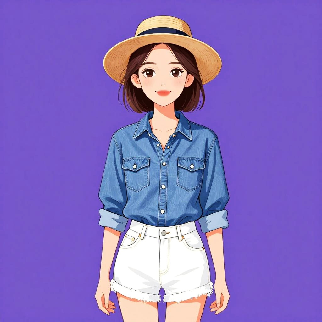 Casual Woman in Denim Dress and Hat