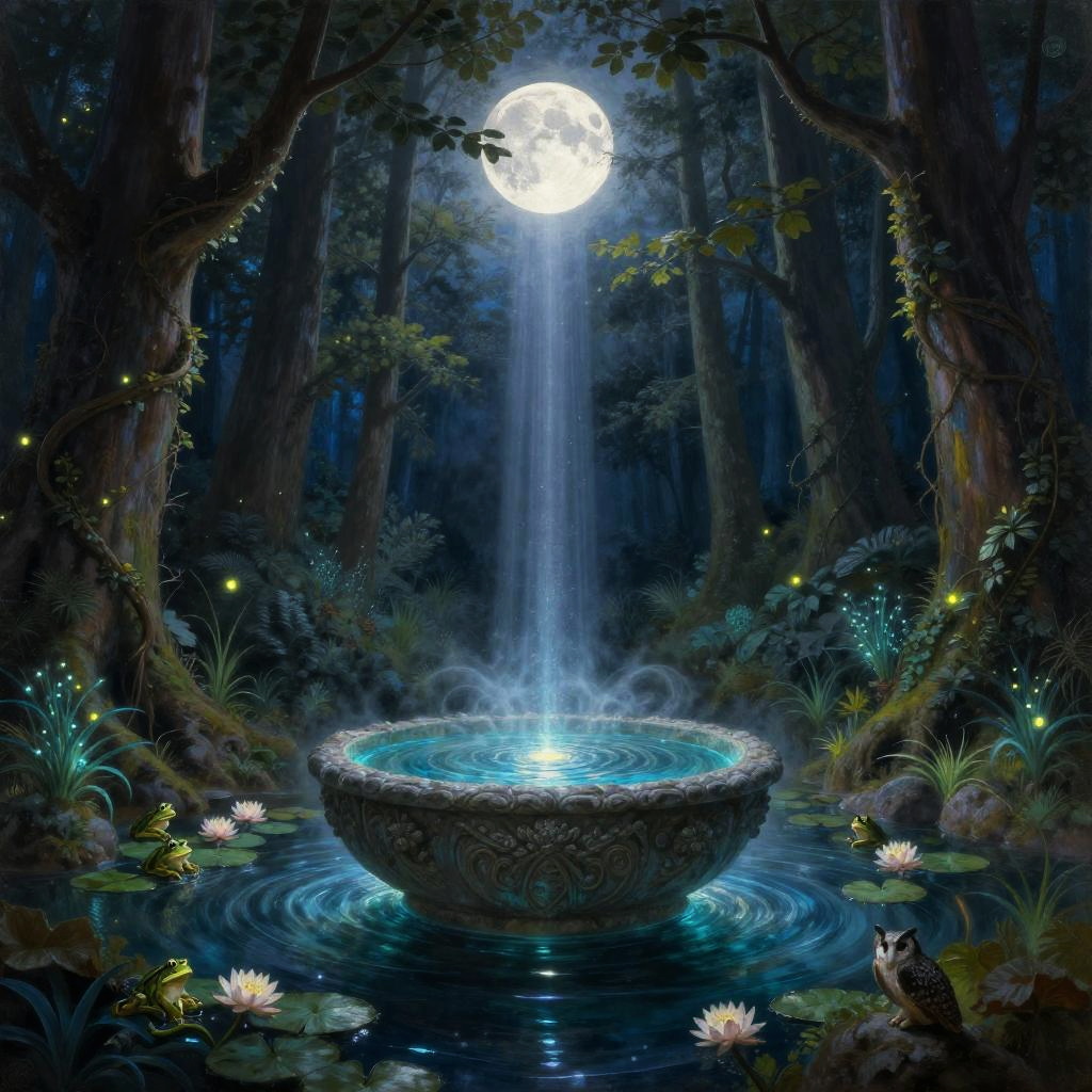 Moonlit Enchanted Forest Pool Scene