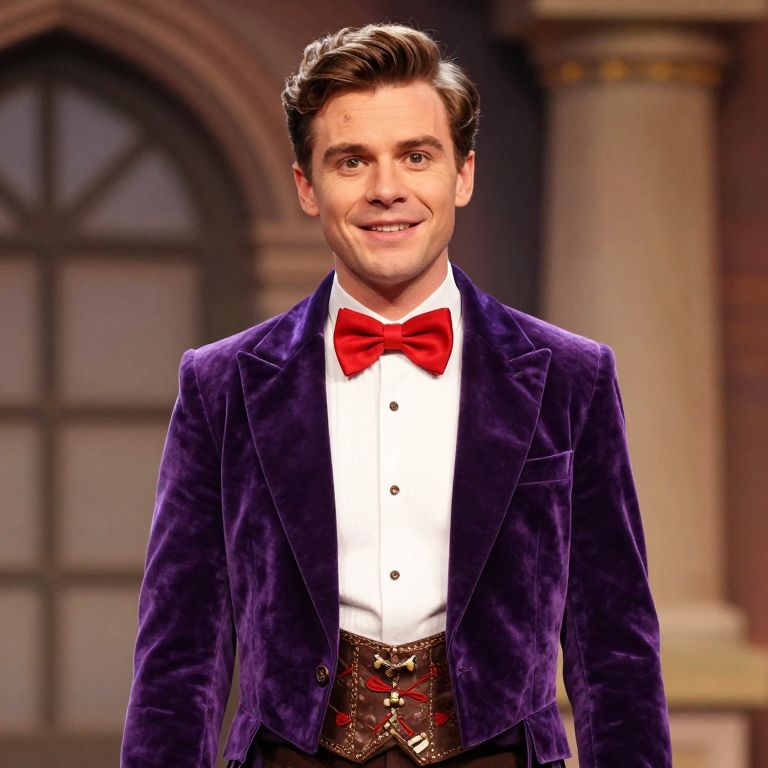 Charlie And The Chocolate Factory Dressbenny The Jet Rodriguez, dressed in a purple velvet jacket and a red bow tie