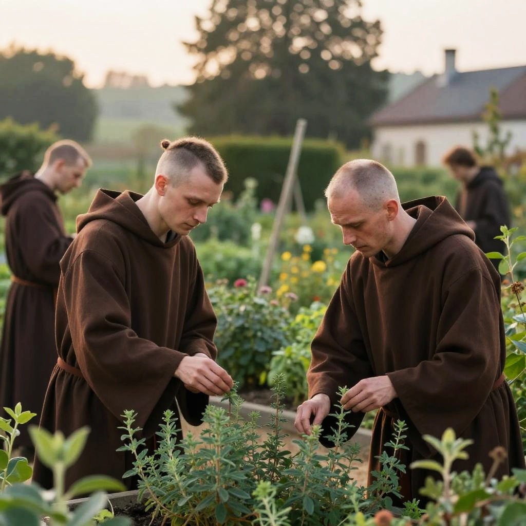 Franciscan Monks Tending Herb Garden