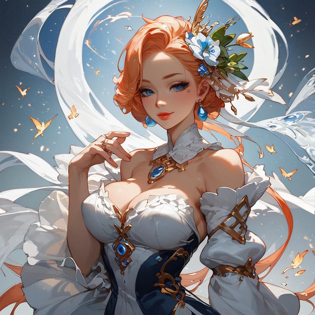 Ethereal Woman in Blue Dress