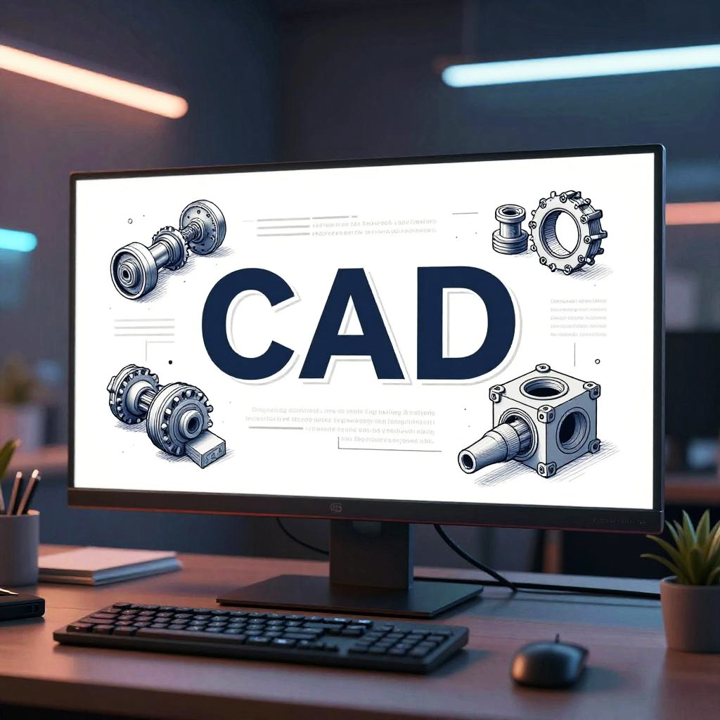 A creative digital illustration of text to CAD workflow showing lines of engineering text morphing into detailed 3D mechanical parts on dual monitors in a modern studio, neon lighting and dynamic angles highlighting innovation.