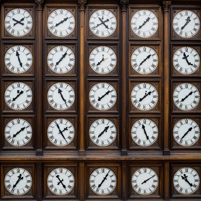 A clock tower with infinite doors, each showing a different century, continuously rewrites its own history every minute.