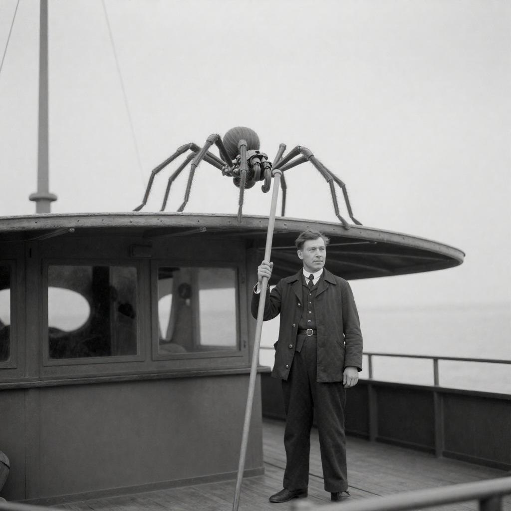 Vintage Maritime Encounter with Mechanical Spider