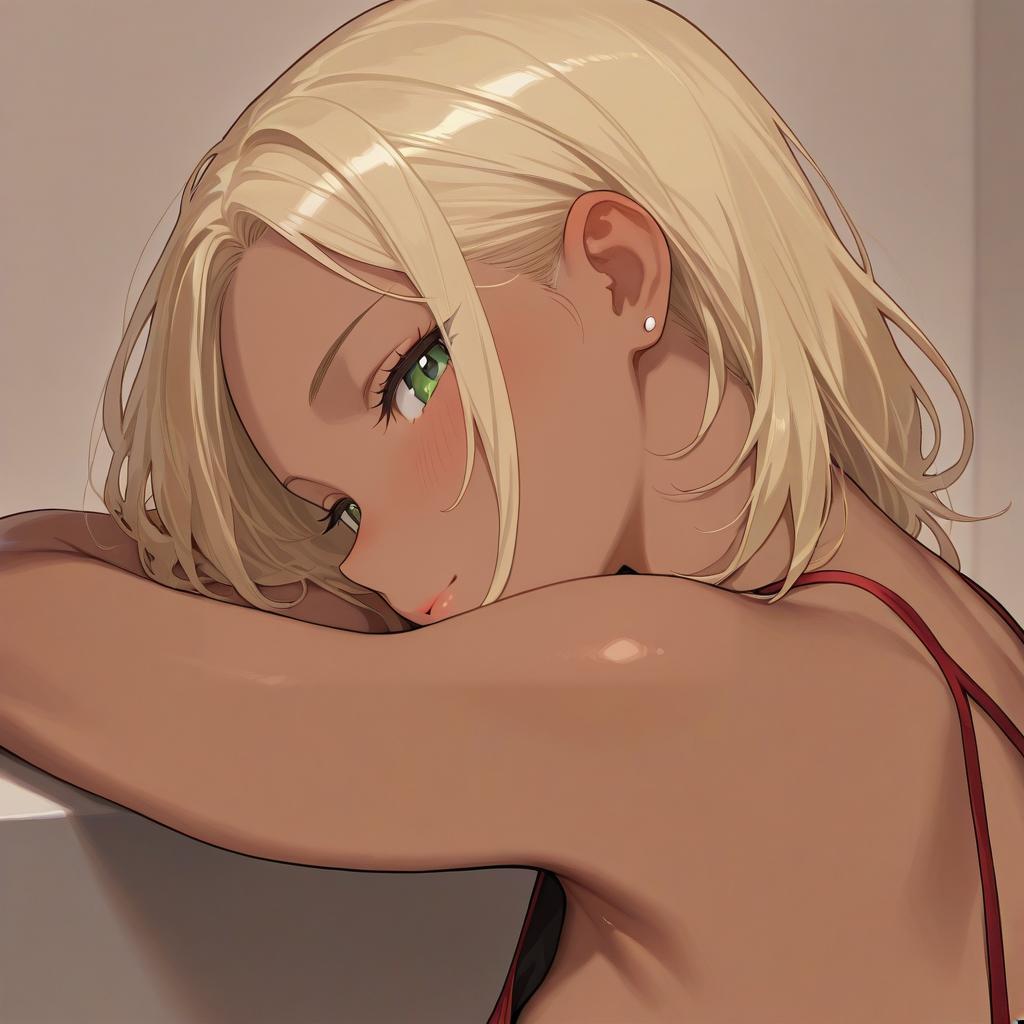 Masterpiece, best quality, higher, asian, (brown race), dark skin, blonde hair, 1girl, ndge