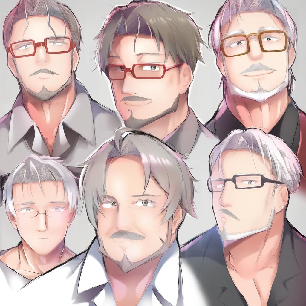 Arurandeisu, holostars, 1boy, mature male, beard, green eyes, grey eyes, glasses, red-framed eyewear, grey hair, short hair, white hair, collared shirt, virtual youtuber, virtual youtuber, goatee, by artist shishi juuroku, leet