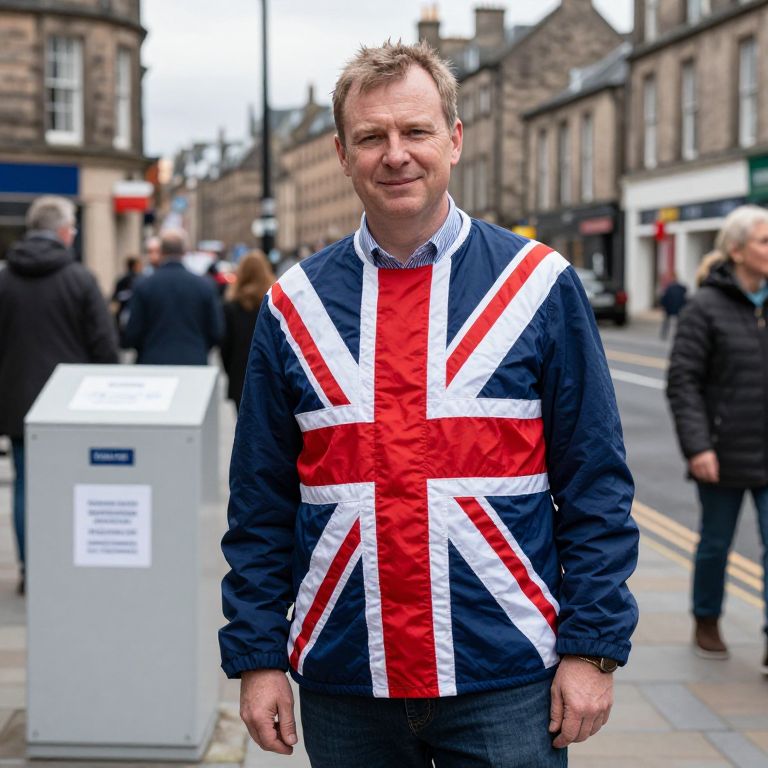 Royalist John Loughrey from England shows his support posing for a photograph decked out in Union Jacks outside a polling station in Edinburgh