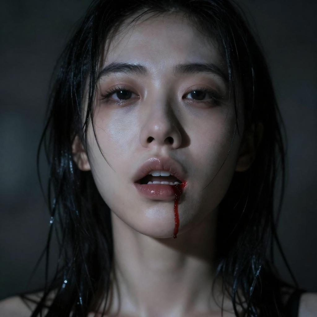 Mysterious Woman in Dim Shower Room