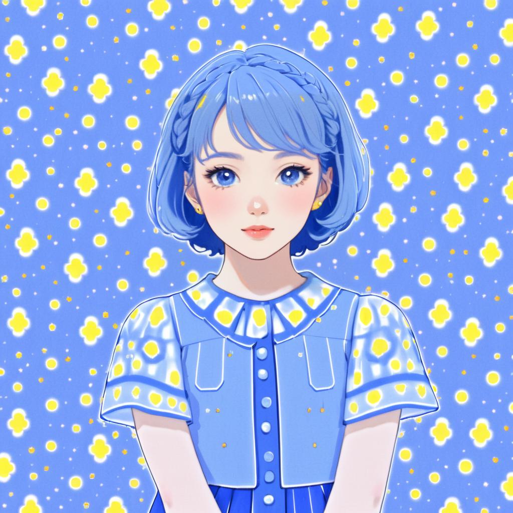 Dorothy west, pretty series, 1girl, blue eyes, blue hair, short hair, side braid, braid, by artist hao (patinnko), anime
