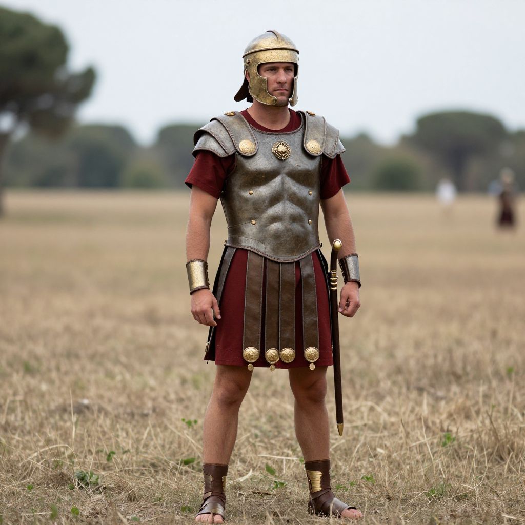Roman Legionary Costume, man in a roman costume standing in a field