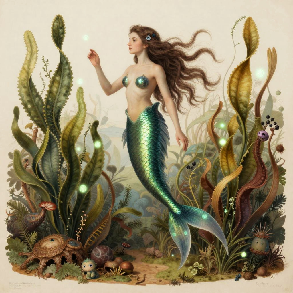 Mystical Mermaid in Moonlit Pre-Raphaelite