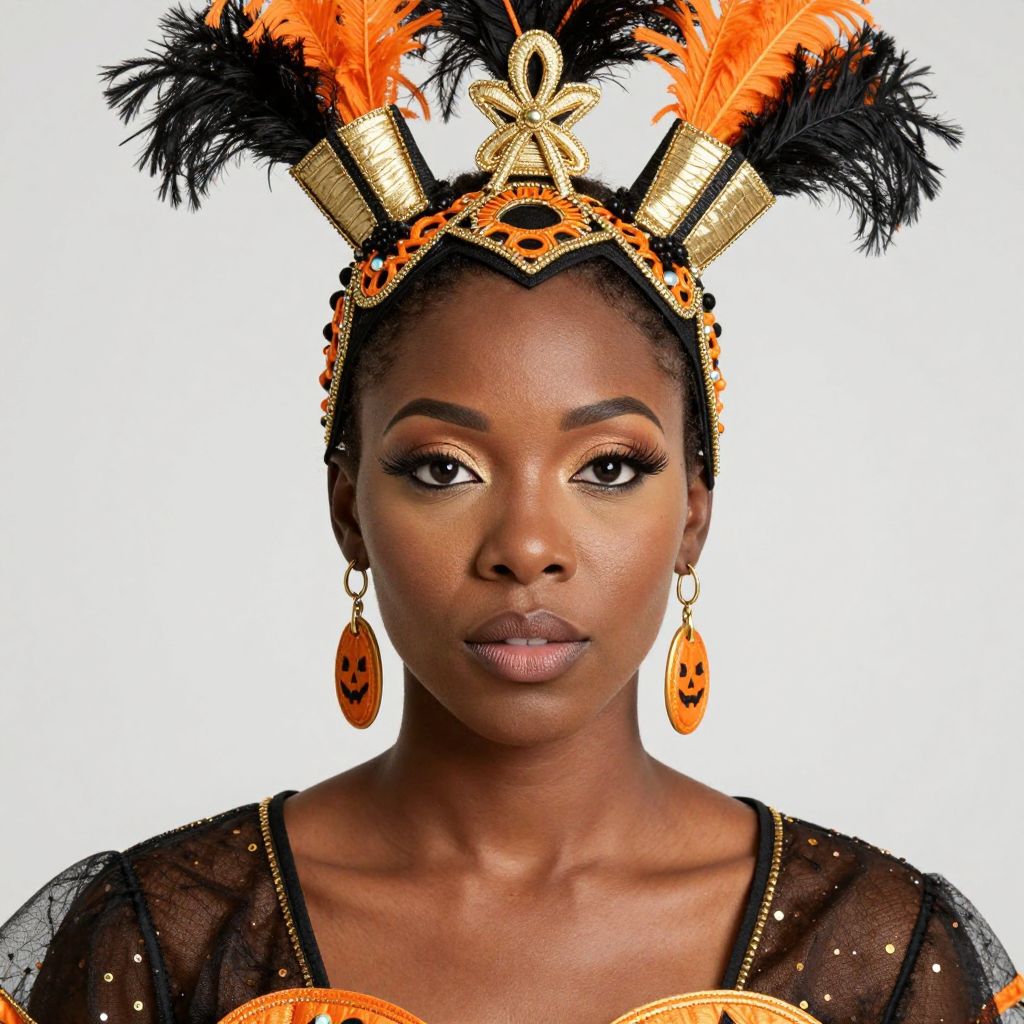 Halloween costume african american, a close up of a woman in a costume with a headdress