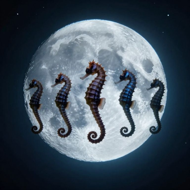 Beneath an underwater moon that only rises once every thousand years, seahorses dance in synchronized silence, time reversed.