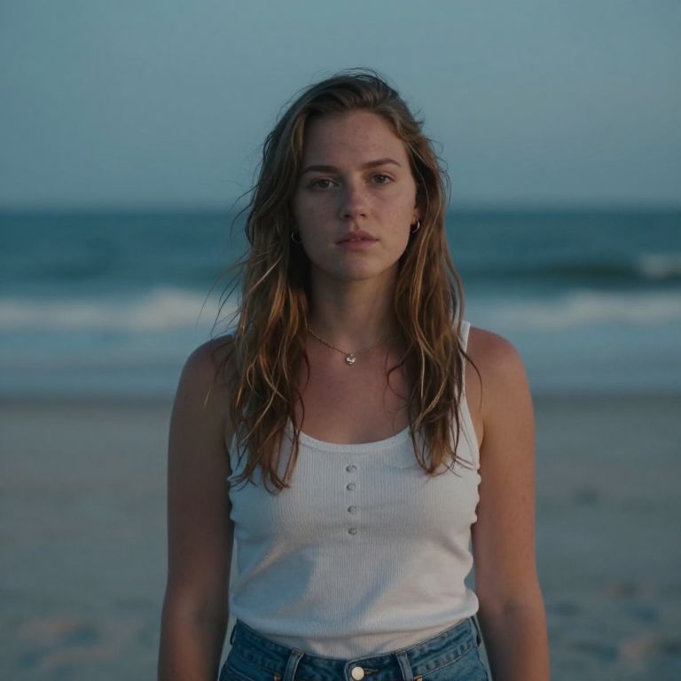Motion Graphics hyperrealistic portrait of Madelyn Cline, cinematic lighting, long exposure, outer banks,