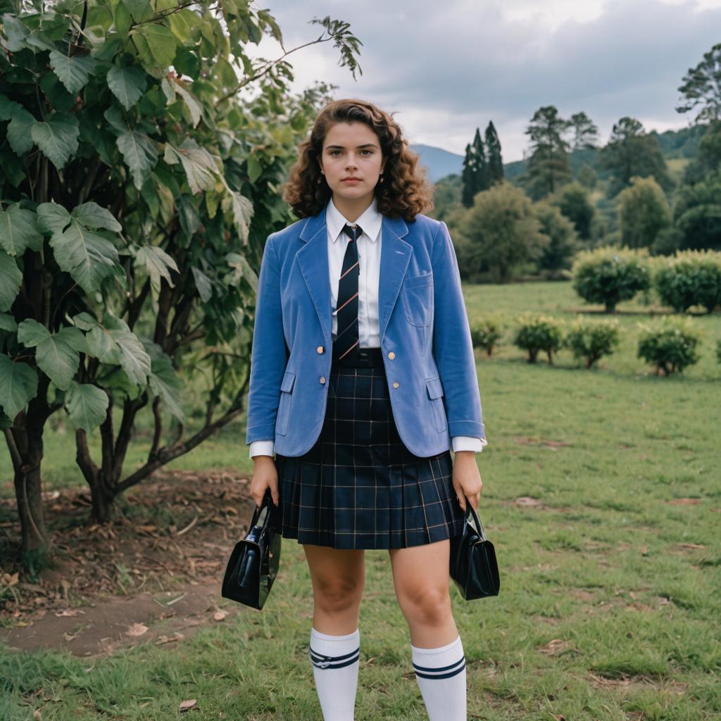 Woman in Retro Preppy School Uniform Outdoors