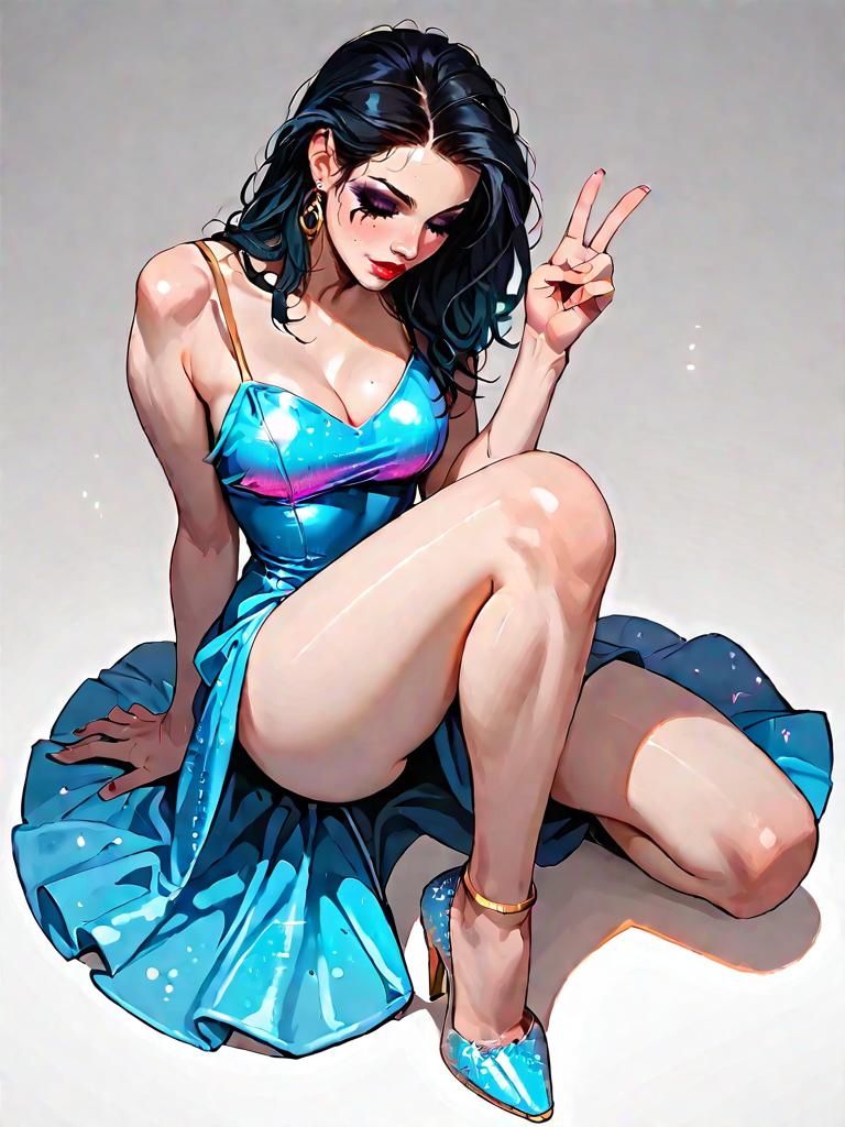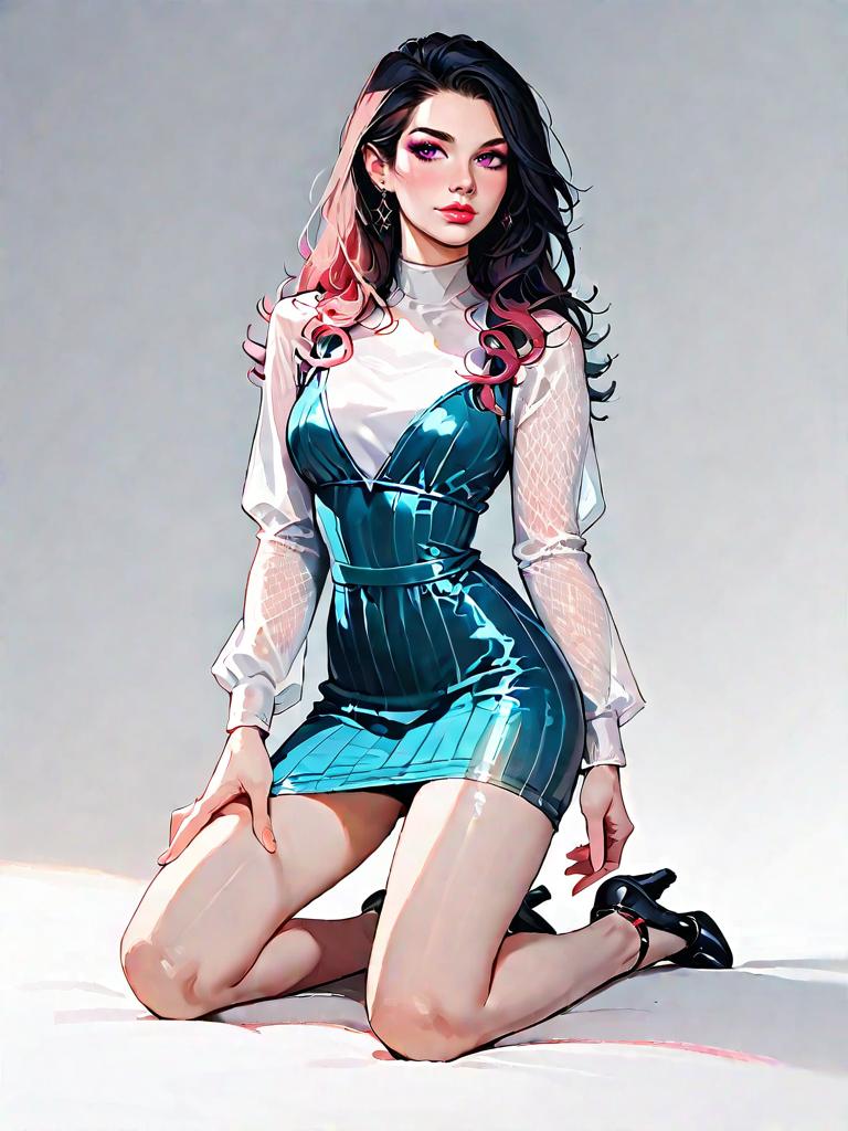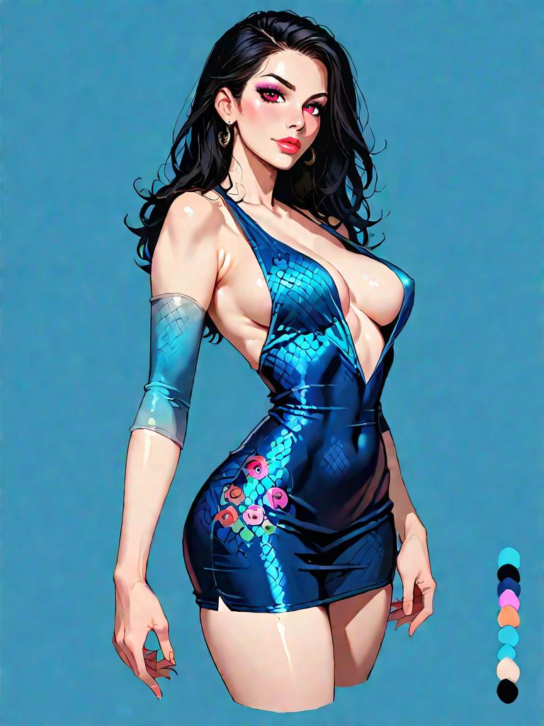 1girl, source_comics, realistic face, full body shot, Woman, sexy, bodycon mini dress in lace with snakeskin print, plunging neckline, three-quarter sleeves, fitted silhouette, neutral color palette.