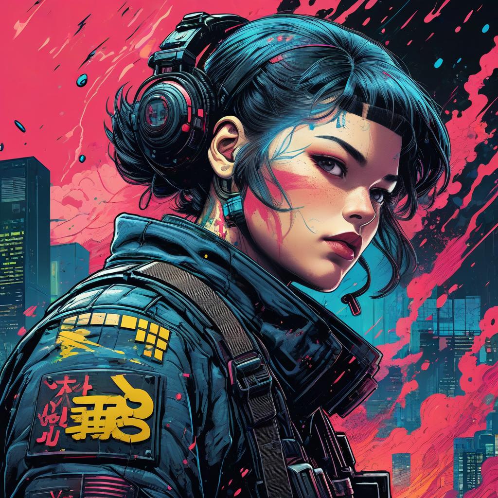 Terminal Jocko Willink Video game cover art, woodblock, in the style of Junko Mizuno, insane high detailed beautiful composite, sharp line work, clear focus, dramatic lighting, epic composition, sharp contours, graphic detail, colorized in the style of frank miller, bright colors, cartoon, dripping paint, cyberpunk attire