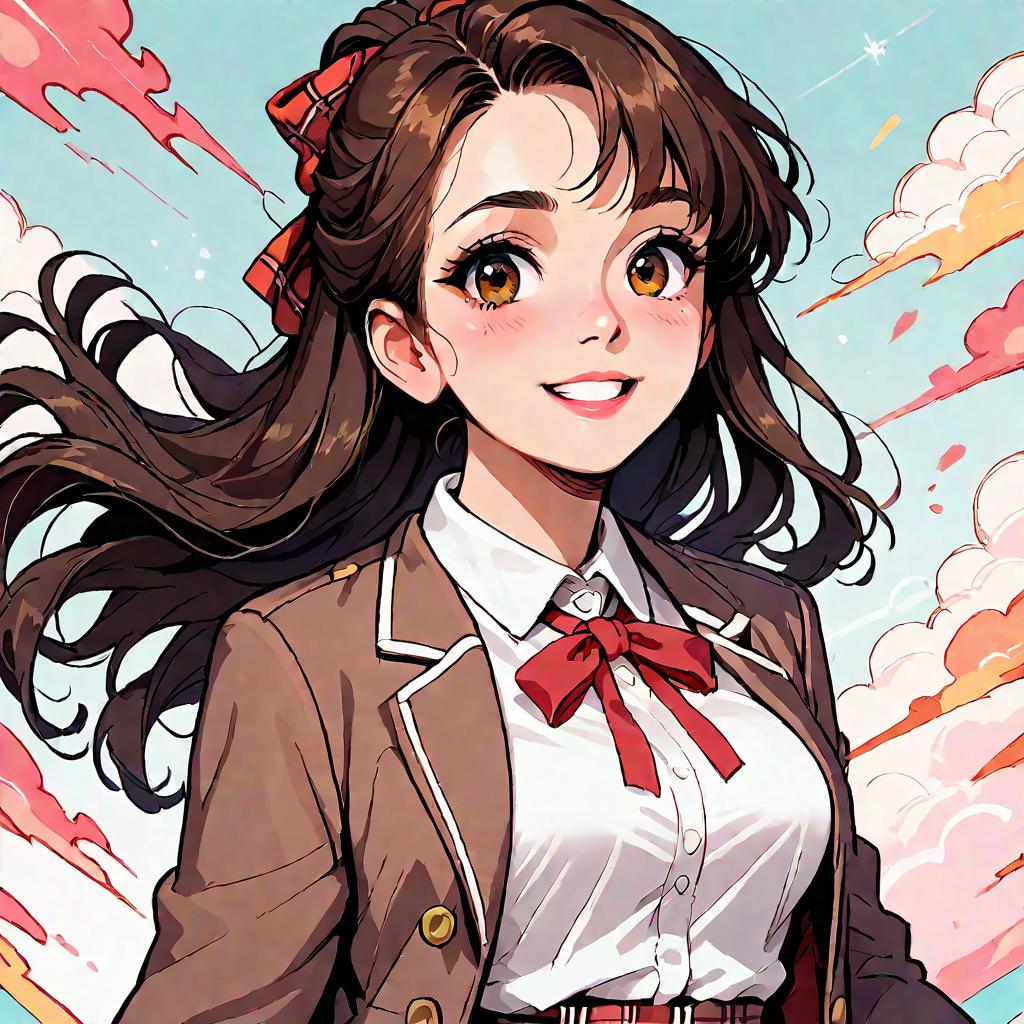 Cheerful Schoolgirl Beneath Cherry Blossoms