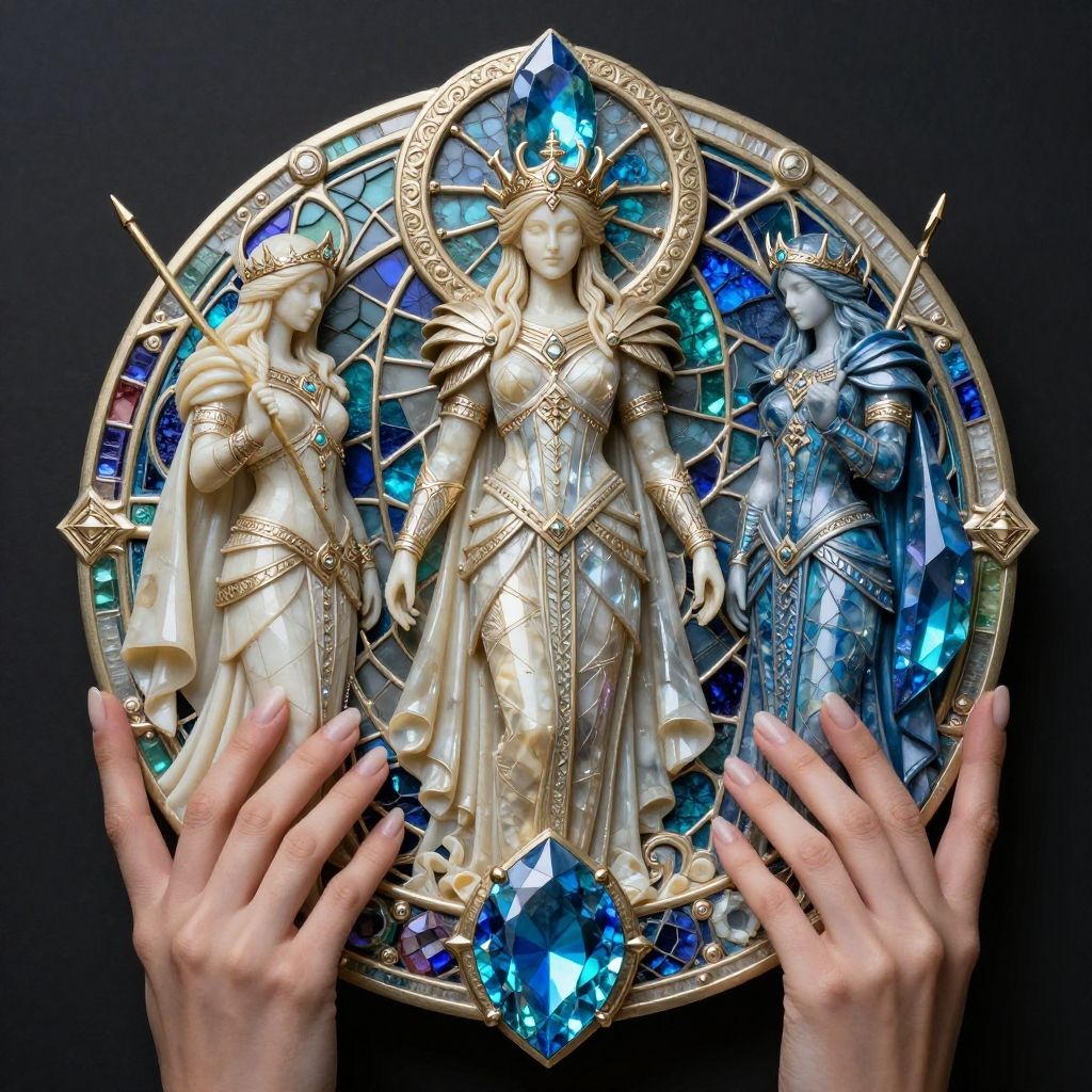 Ivory and . and . and . and . and . and . and sapphire and topaz ornament of Valkyrie - Female figures in Norse mythology who choose those who may die in battle and those who may live, often depicted as powerful warriors. Deborah Azzopardi, natural, shimmering, vibrant, gothic, rpg, 1400ad, ultra detailed, detailed, immersive, reminiscent of high fantasy RPG games, HD, masterpiece, best quality, hyper detailed, super realistic, perfect face, perfect hands, award-winning, professional, breathtaking, linquiveradreary Glacierhorrible weatherstained glass style . vibrant, beautiful, translucent, intricate