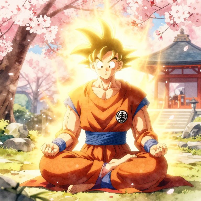 Goku Meditating in Tranquil Forest