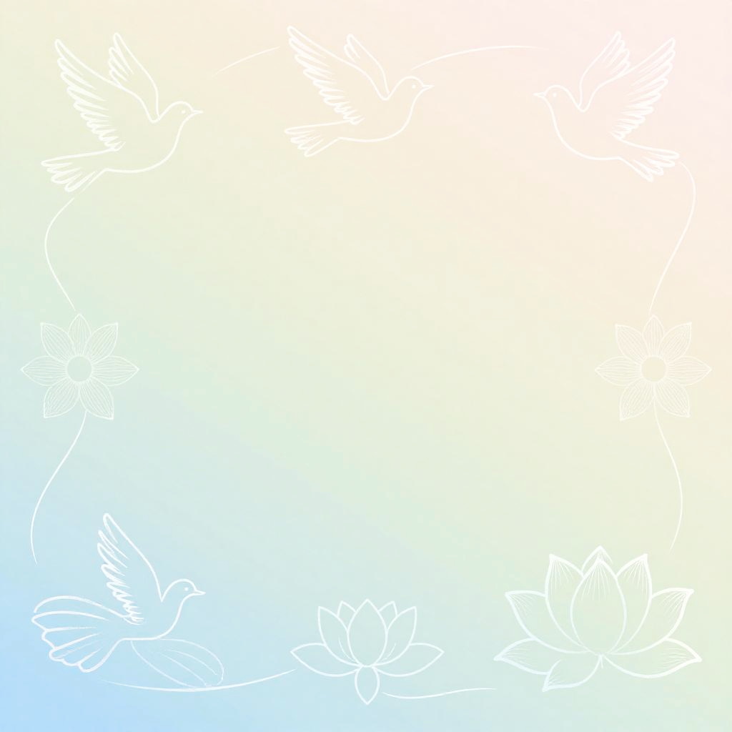 An abstract composition representing quiet symbolism via soft gradients of pale colors, intertwined delicate lines forming subtle symbolic shapes like doves, lotus flowers, and water ripples, evoking tranquility, mindfulness, and the unseen presence of calm.