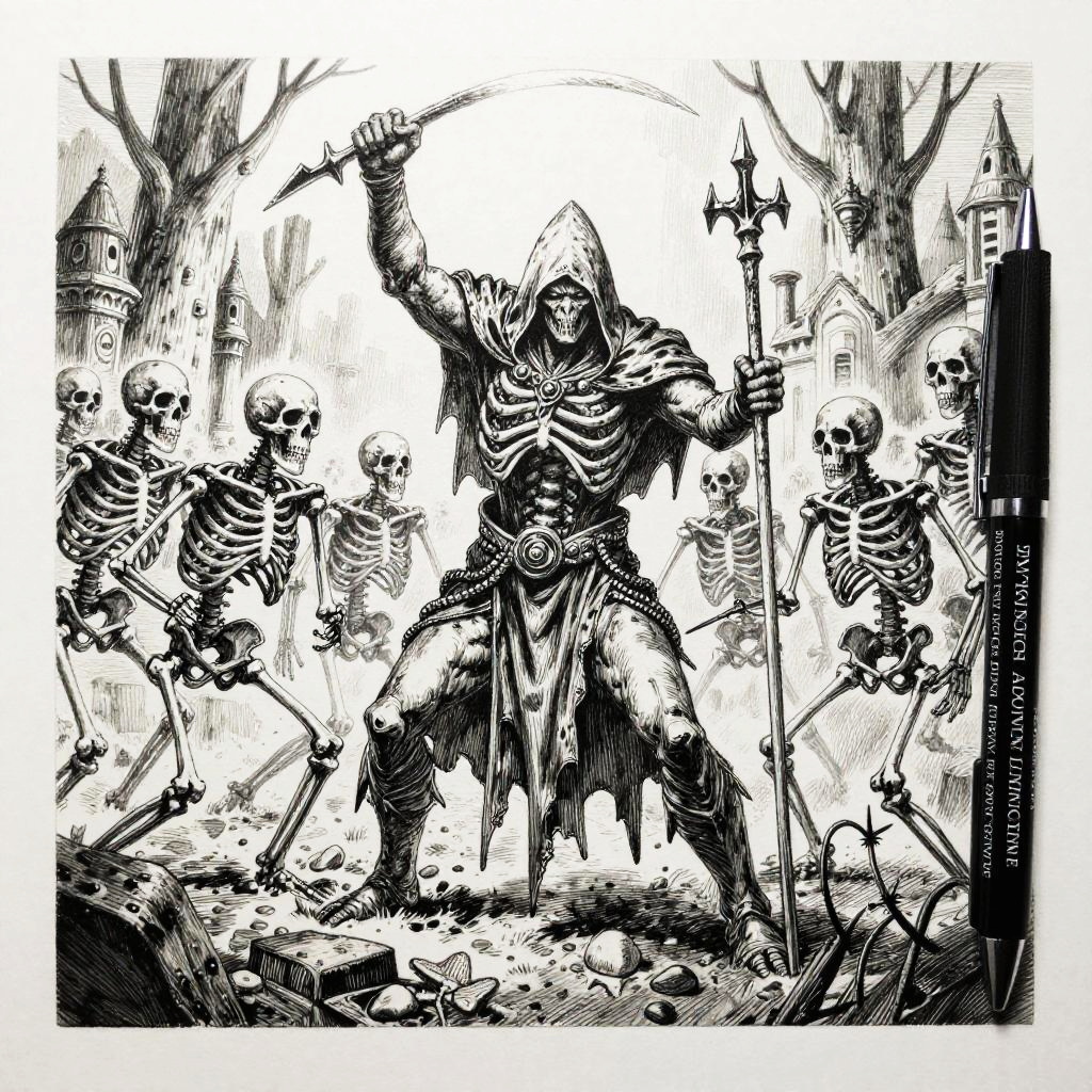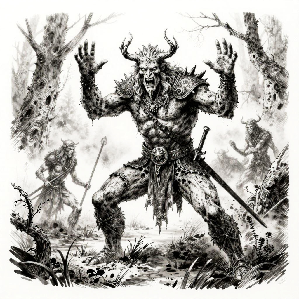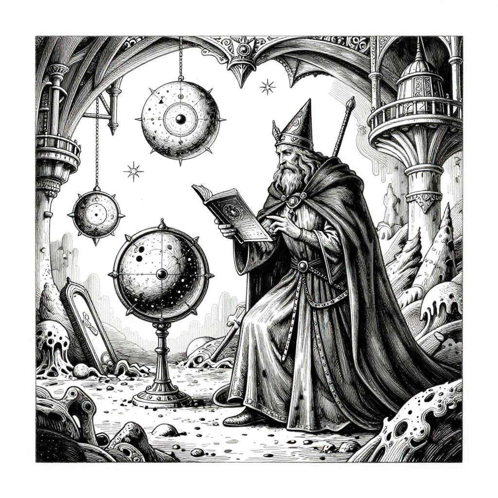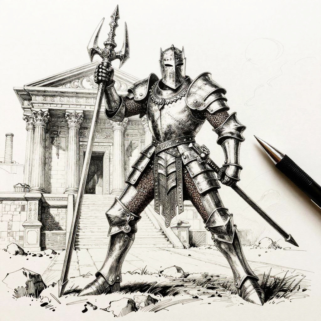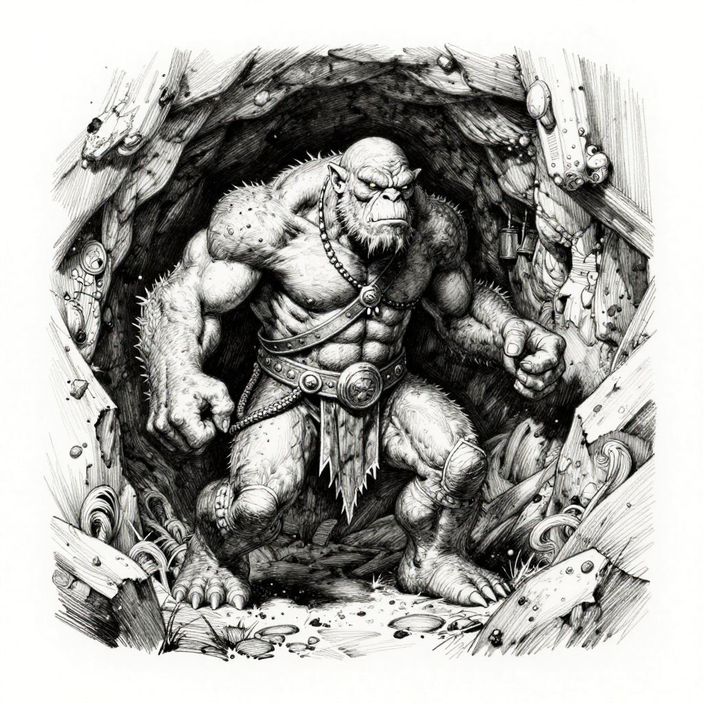 Pen and ink drawing of a stealthy scout climbing a ruined watchtower, fighting fantasy style, highly detailed, inspired by Steve Jackson and Ian Livingstone