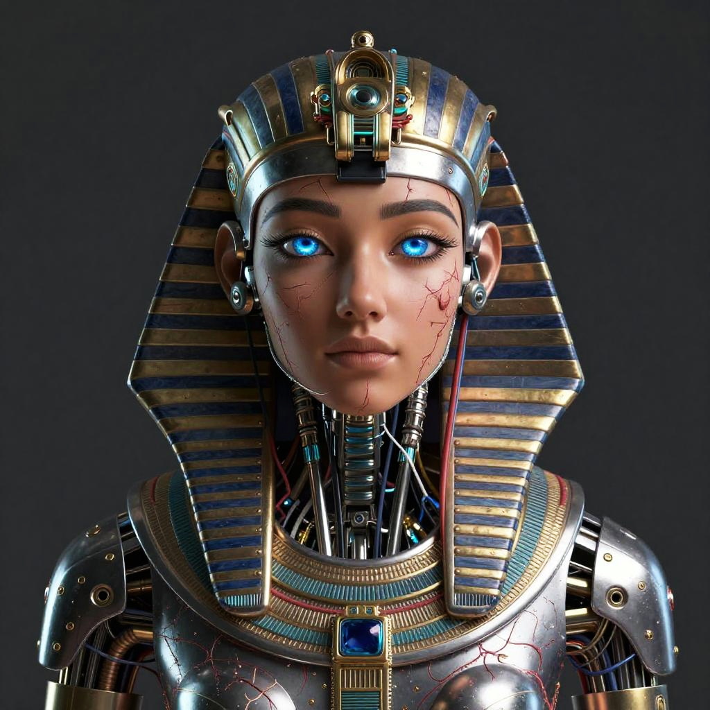 1mechanical girl, ((ultra realistic details)), detailed face, global illumination, shadows, octane render, 8k, ultra sharp, metal, intricate, ornaments detailed, cold colors, egypician detail, highly intricate details, realistic light, trending on cgsociety, glowing eyes, facing camera, neon details, machanical limbs, blood vessels connected to tubes, mechanical cervial attaching to neck, wires and cables connecting to head, blood, killing machine