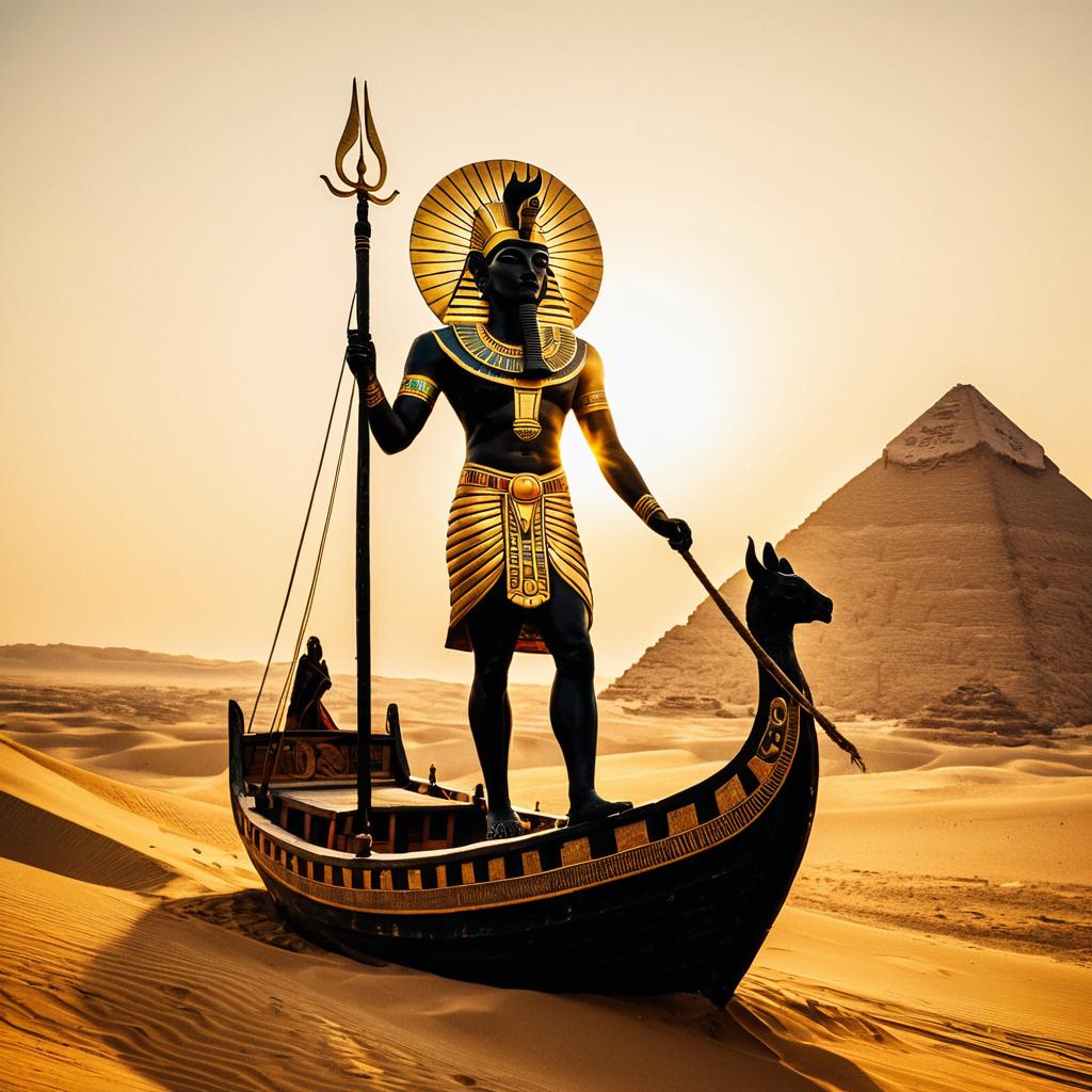 Ra Sun God with Radiant Headdress at Dawn