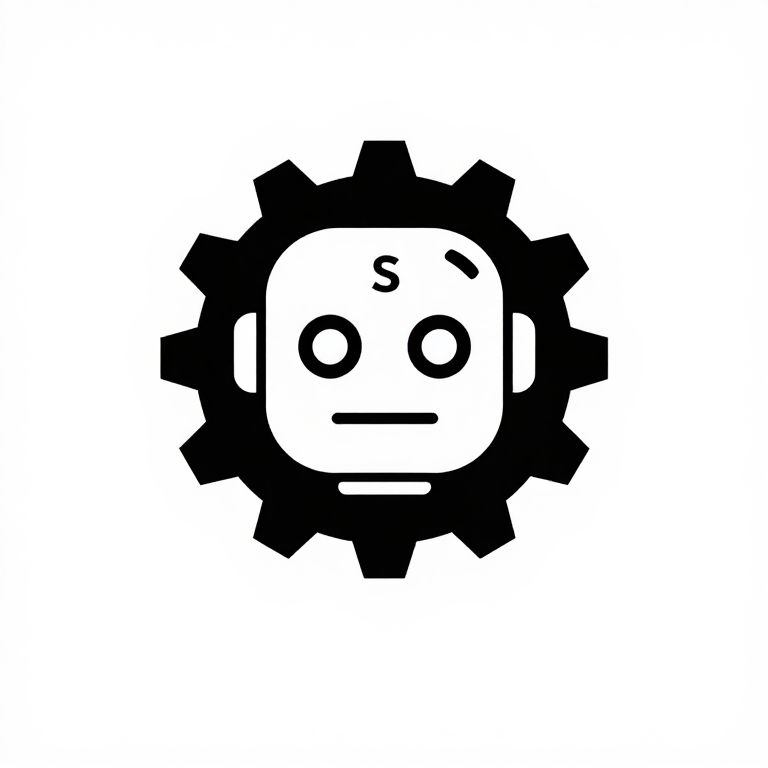 "Gears professional business logo, with a robot head and the letter S engraved somewhere on robot head, simple design, clean design,"