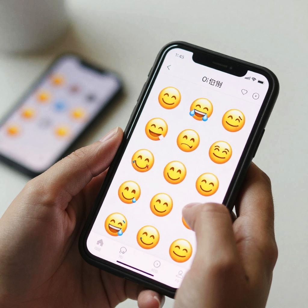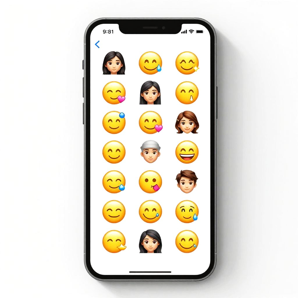 Creative image to emoji conversion illustration, showcasing a smartphone screen where a detailed portrait is being translated into a grid of expressive emojis, soft lighting, modern UI elements, digital art, bright and playful vibe