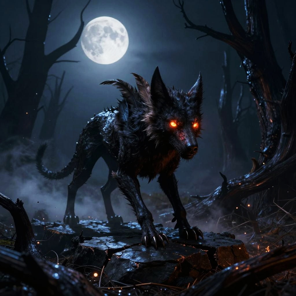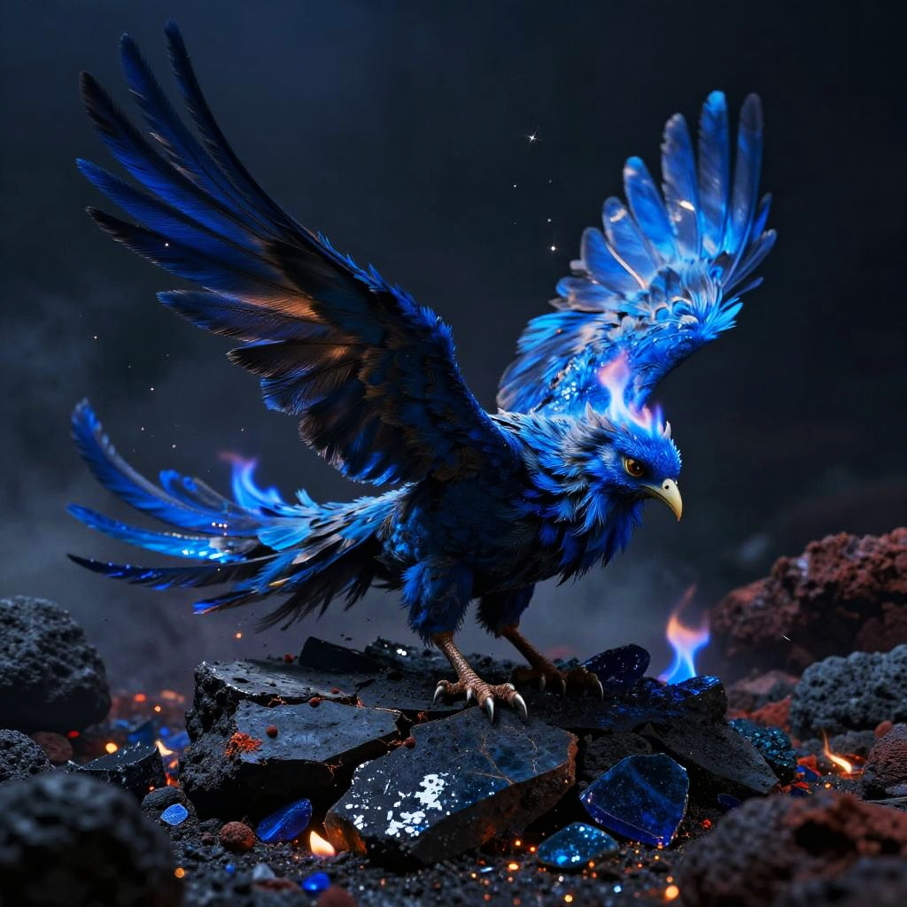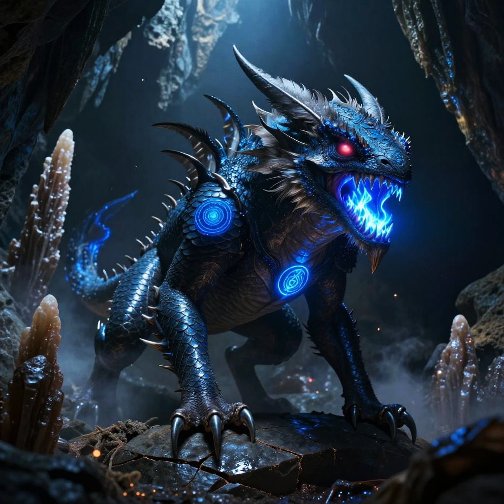 Azure Manticore on Moonlit Ravine