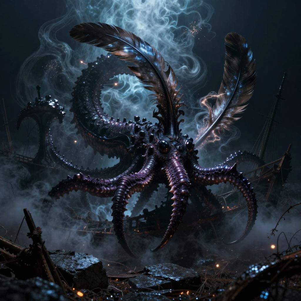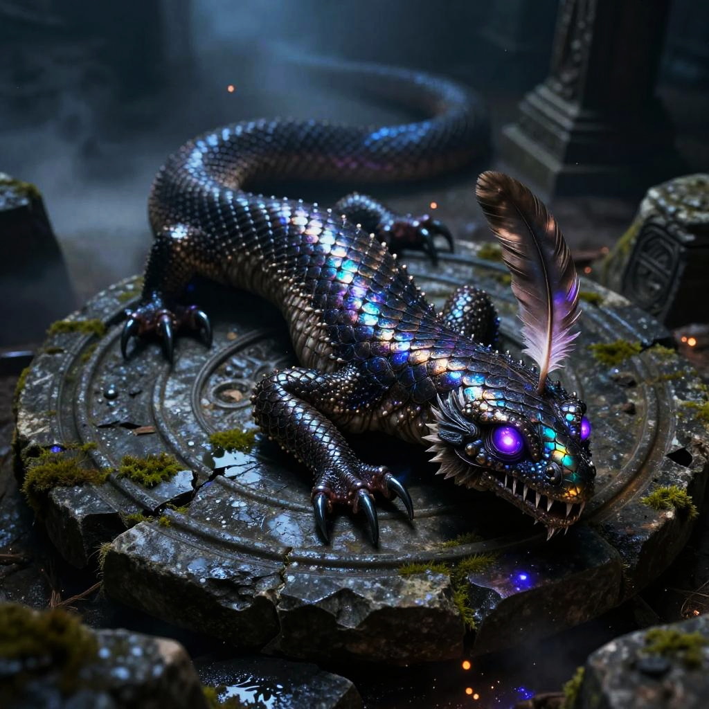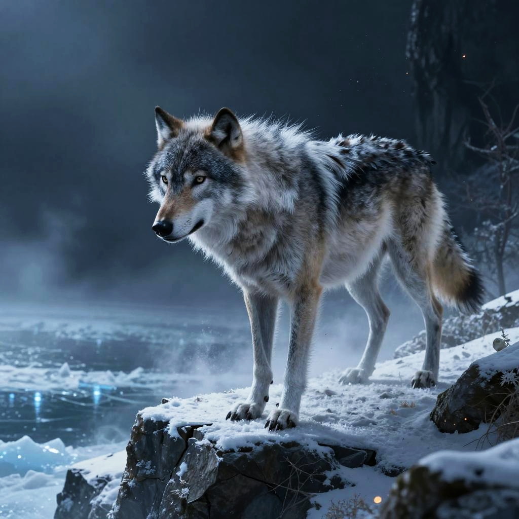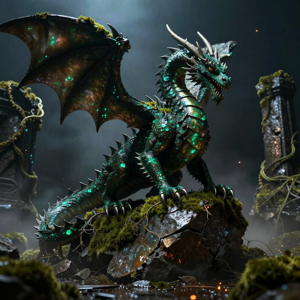 Azure Manticore on Moonlit Ravine