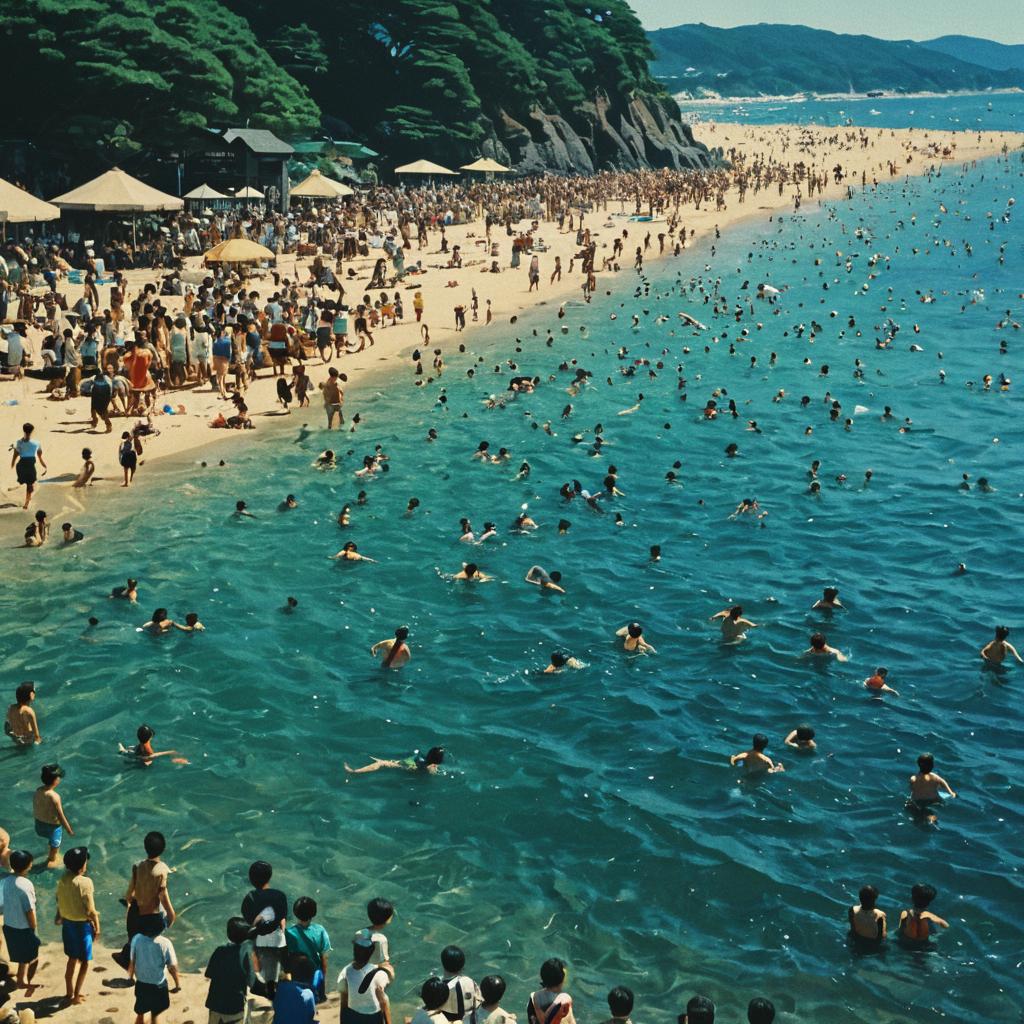 A minimalist design inspired by Richard Diebenkorn, featuring sailors against a open sea horizon. Rendered with a navy blue, ochre yellow, evoking vintage summertime vibes.
