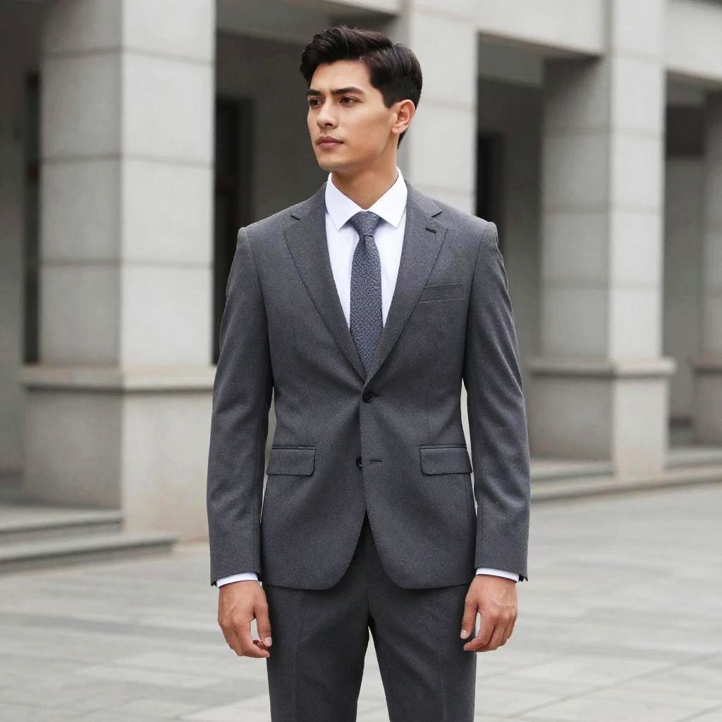 Groom Full Suit, man in a suit and tie standing in front of a building