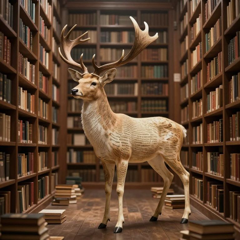 A librarian with a body made of paper catalogs and ink feeds stories directly into the minds of enchanted stone statues.