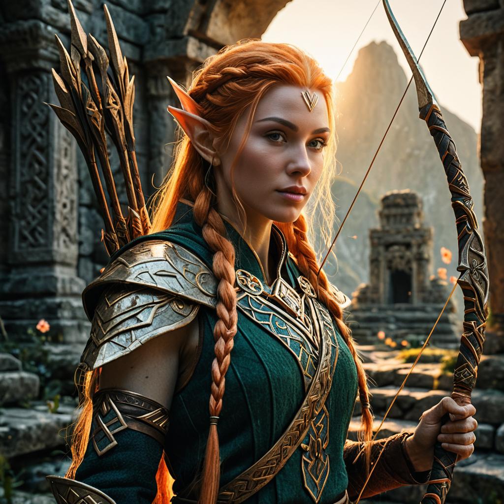 Elven Archer, concept art, detailed face, fantasy, highly detailed, cinematic lighting, digital art painting by Jama Jurabaev