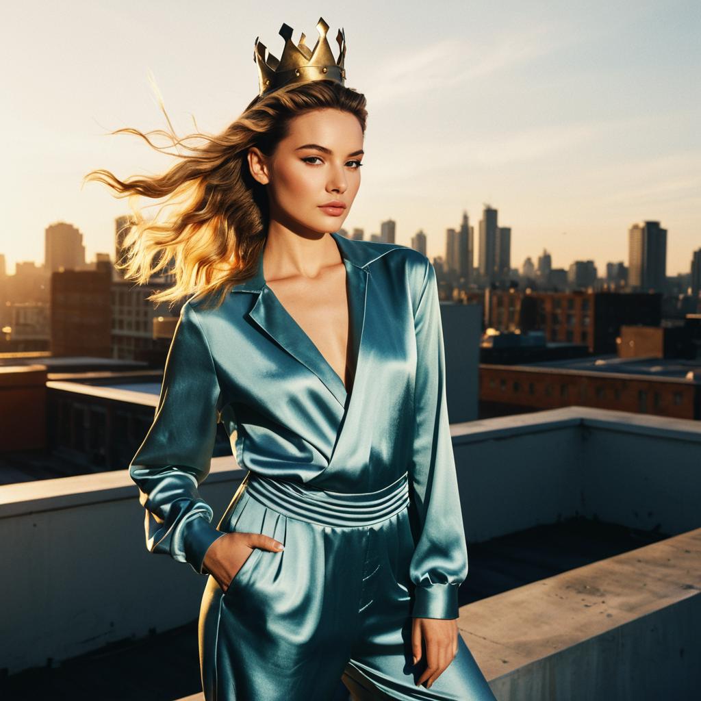 Woman with Twisted Updo Hairstyle on Urban Rooftop