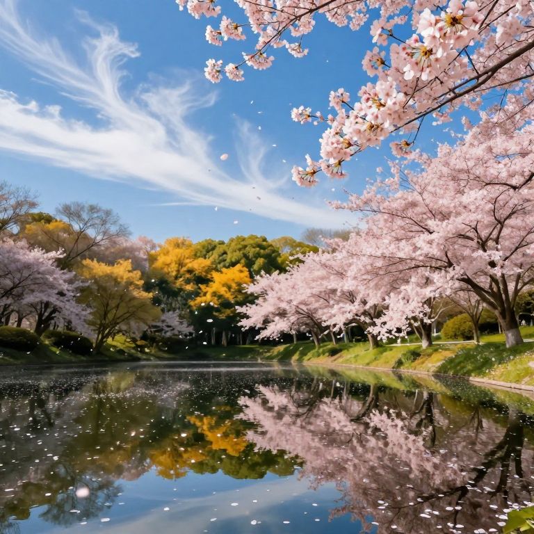 Envision a surrealist Japanese garden at twilight, viewed from an unconventional angle as if through the eyes of a small creature. Cherry blossoms burst with life in this captivating landscape where time appears to pause, creating a dreamlike atmosphere. The transition between reality and fantasy is seamless: an age-old tree transforms into an oversized clock hand extending long, mystical shadows over the garden path. This mesmerizing scene combines ethereal beauty with a touch of mystery, capturing both the serene grace of nature and the whimsical charm of enchanted worlds reminiscent of Studio Ghibli's creations.