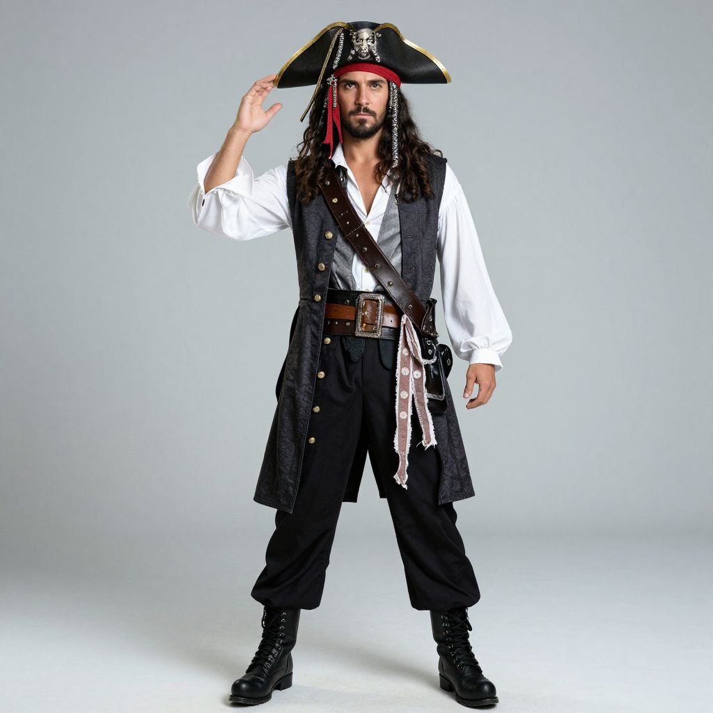 Pirate Costume Outfit, pirate in a pirate costume posing for a photo