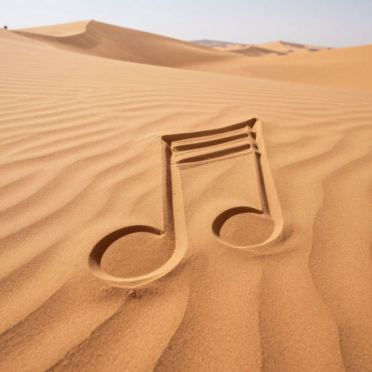 A desert where every grain of sand is shaped like a tiny musical note echoes with wind-woven symphonies.